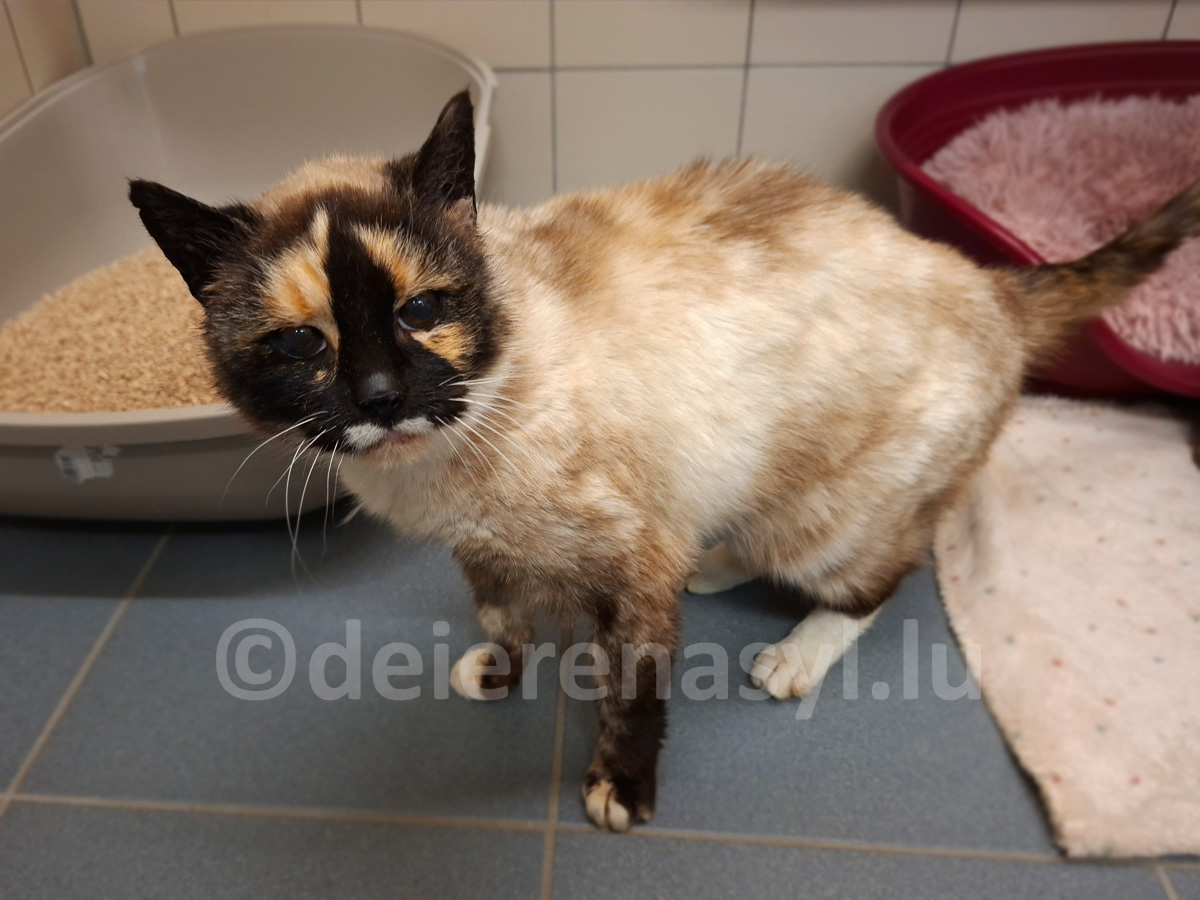 ELODIE est une adorable chatte senior qui cherche un beau foyer avec beaucoup de caresses. En raison de son âge, sa mobilité est un peu réduite et elle a besoin d’une alimentation spécifique ainsi que de médicaments.